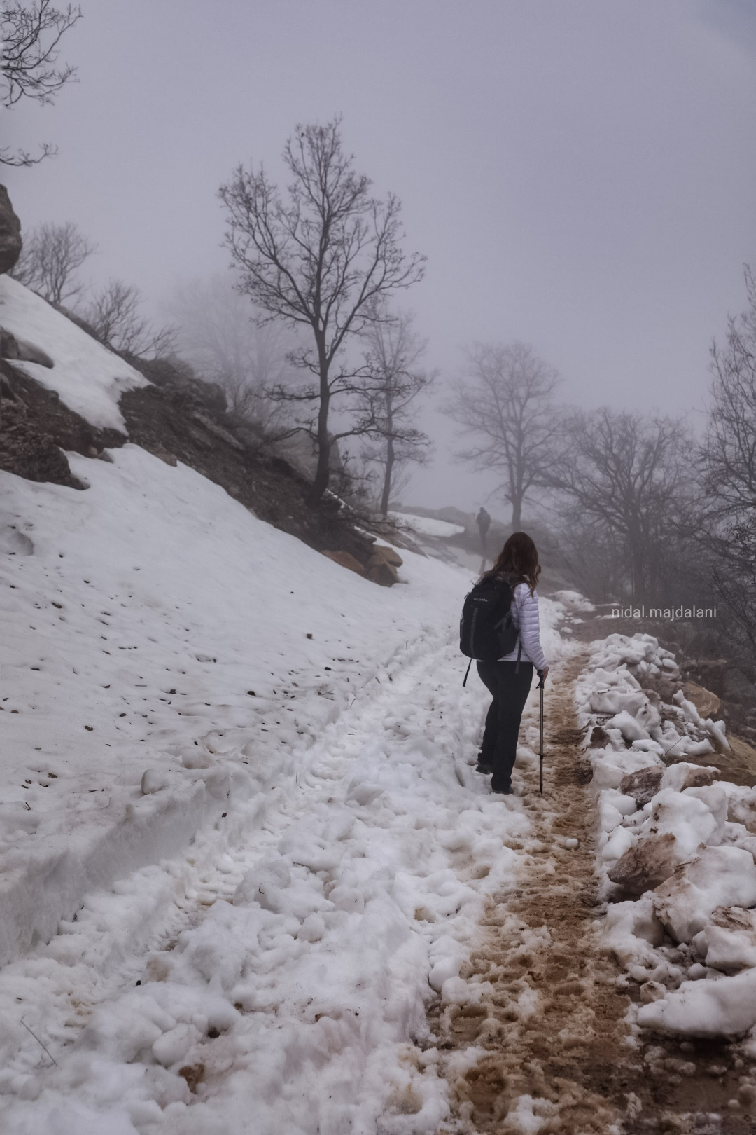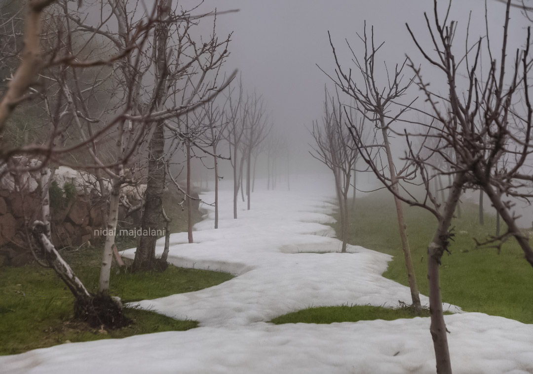 وهكذا بدأ المسير وسط الضباب وزخّات المطر، وكيفما مشينا نزولاً، ترافقنا الأنهار والينابيع، وأحياناً تقطع طريقنا فارضةً حقّها بالملكية، لتذكّرنا بضرورة احترامها وعدم ترك ما يضرّها وراءنا. كان المشهد يتحوّل تدريجياً، من الأبيض إلى البني، ثم إلى الأخضر.