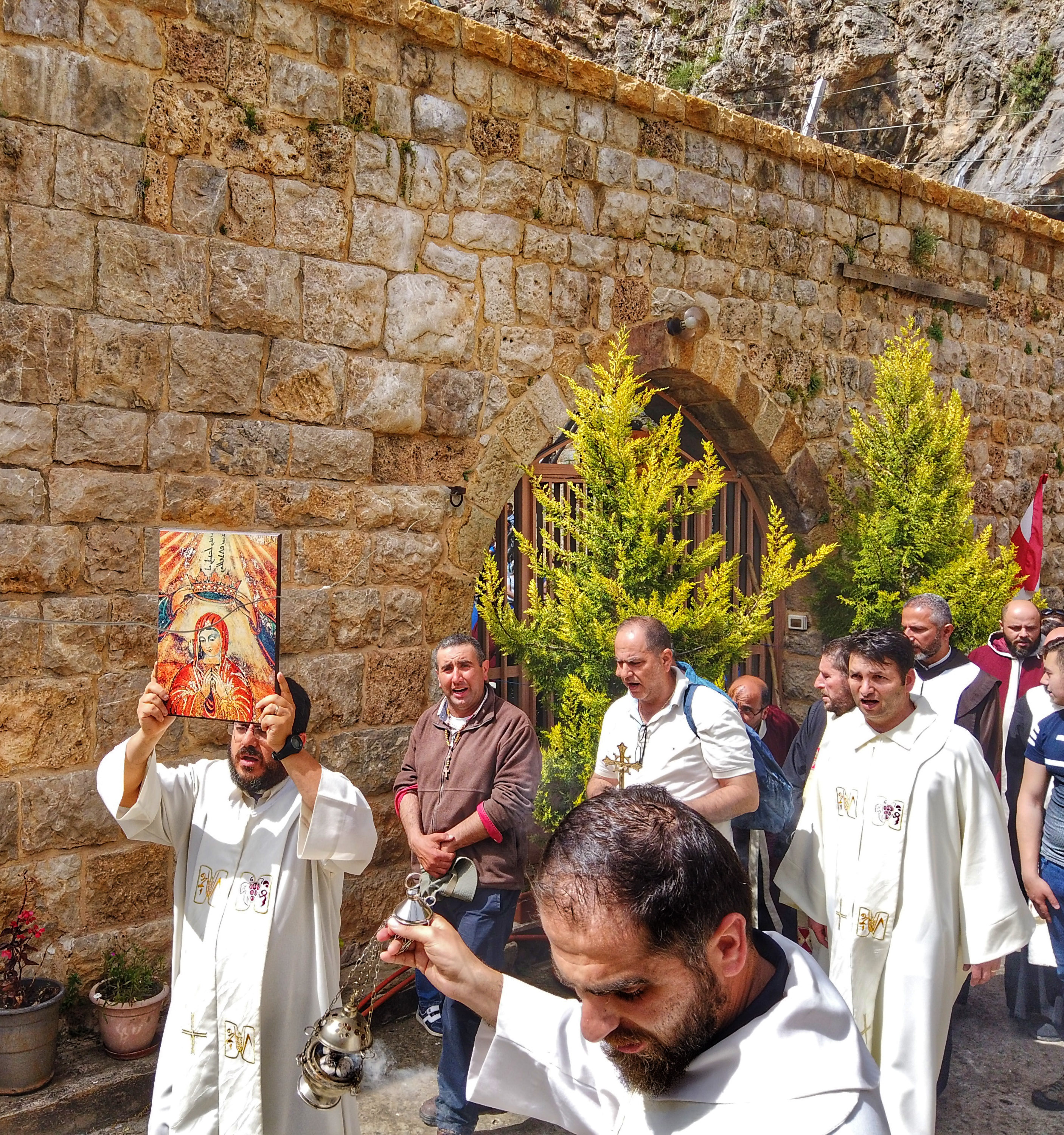 وبالعودة إلى الأول من شهر أيار وبجهود من الشبيبة وتعاون مع مطران الأبرشية, أقيم إحياء تقليد يعود إلى أكثر من ألف سنة ولم يعمل به منذ أكثر من مئتين سنة وهو يعتبر حدثاً تاريخياً وعرساً مريمياً حيث نزل الرعايا من أكثر من خمس عشرة قرية واقعة على كتف الوادي ومن جميع الأعمار, إلى الوادي عبر دروب القديسين القدامى مرتّلين ومصلّين المسبحة على أربع مراحل. وكل منها كانت تحمل غرضاً من التقديمات للاحتفال بالقداس.
