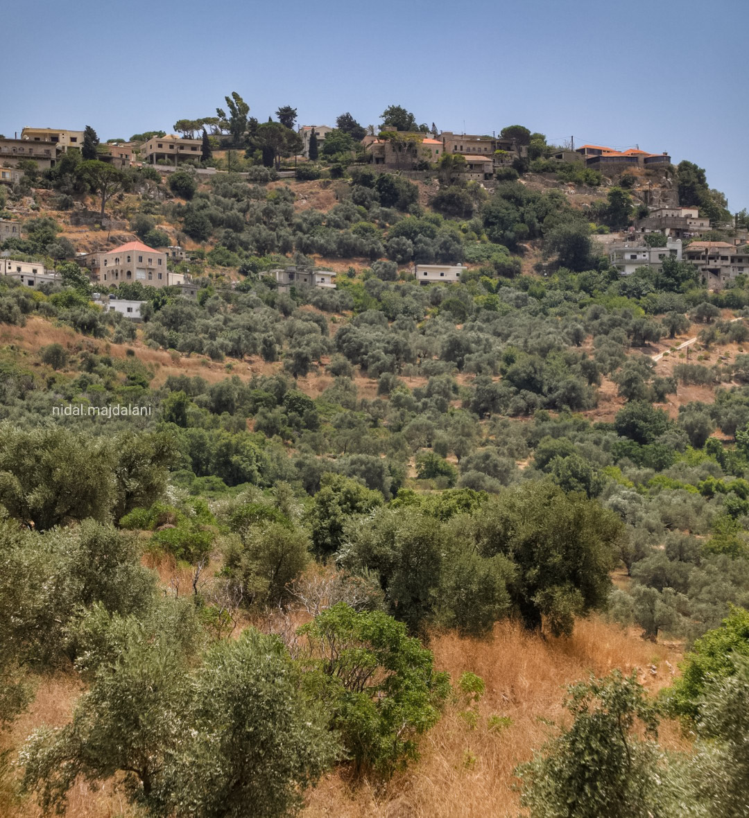 وكان النزول إلى البلدة تارة بين بساتين الزيتون المشهورة بها المنطقة، وطورا في اراضٍ غير مزروعة والتي لم تخلُ من خطر الانزلاق لكونه منحدراً ذات حجارة صغيرة في بعض مسيراته. وتعود هذه الشهرة الى ألاف السنين كعمر اشجار الزيتون هذه والمرجح ان يتعدى الالفي سنة وصولا الى الاربعة الاف سنة, كما ذكر كاهن الرعية. وهي مورد رزق لسكان البلدة ويتعدى عددها ال130 الف شجرة وتعرف المنطقة بجودة زيت الزيتون خاصتها والصابون البلدي والعسل. وكنا قد مررنا في مسيرنا على عدة اماكن لتربية النحل.