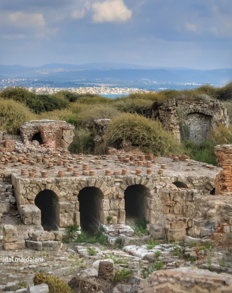 وبفعل موقعها الاستراتيجي، تعاقبت عليها عدة حضارات كالإغريقية والبيزنطية والعربية والعثمانية، وتركت وراءها إرثاً تاريخياً مميزاً يمكن الاطلاع على الكثير من جوانبه في موقعين أساسيين هما الموقع البحري وموقع البصّ، وقد أدرجت على لائحة مواقع التراث العالمي عام 1984. والمثير للاهتمام وجود الكثير من الأعمدة والآثار تحت الماء أيضاً.