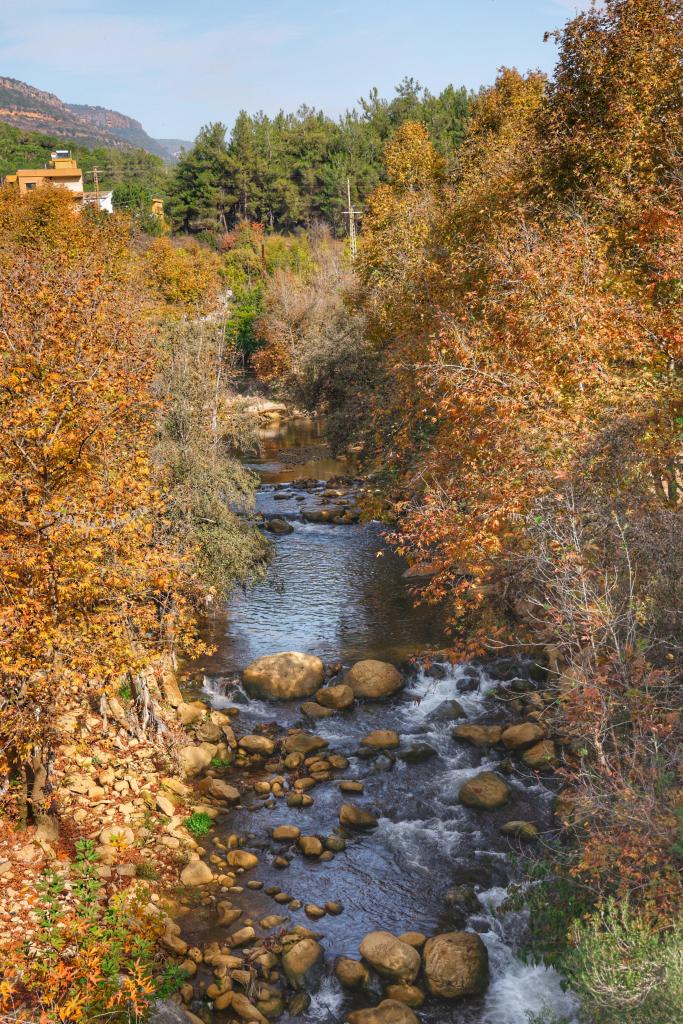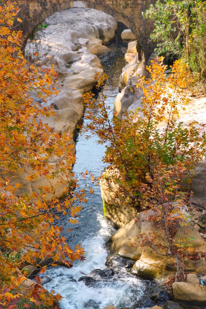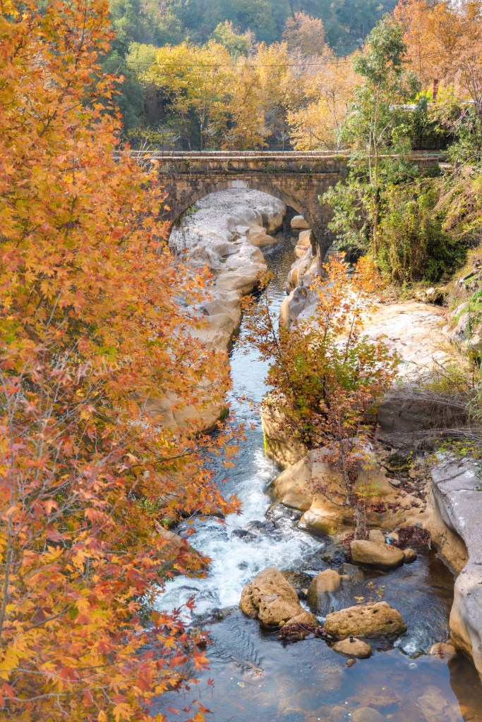 The Damour River flowed steadily below, its calm surface reflecting the sky like a mirror, only broken by ripples that served as a gentle reminder that everything is in motion. I’ve seen this bridge before in the fresh green glow of spring (spring photos included), and in the dry heat of summer, when the stones turned pale white under the sun. But autumn has its own charm. It feels deeper, more soulful, as if nature takes its time to paint every leaf with care.