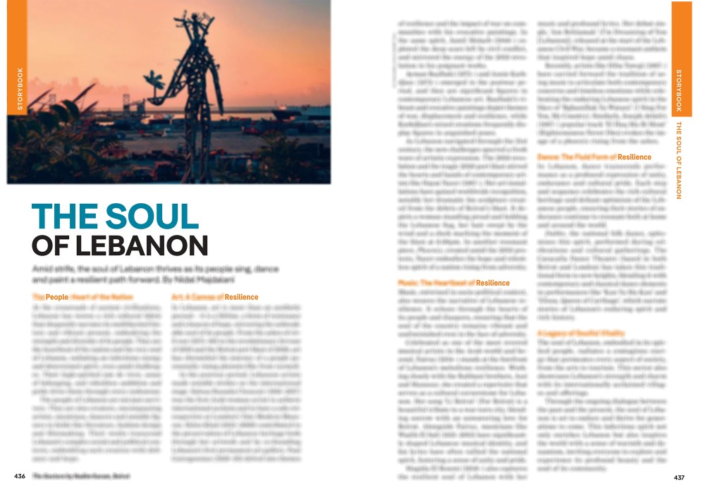The book’s “Storybook essay” was my space to share what I titled “The Soul of Lebanon”, a piece that centers around its people as “the heart of the nation”, and the unshakable resilience they express through their creativity. From culture to tourism, that spirit runs through every sector, and it is the very force that has fueled my mission from the beginning to celebrate a Lebanon that continues to rise, create, and inspire, no matter what.